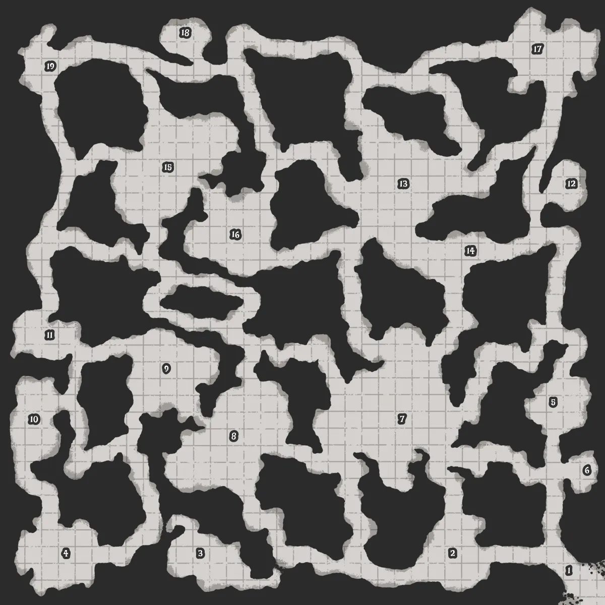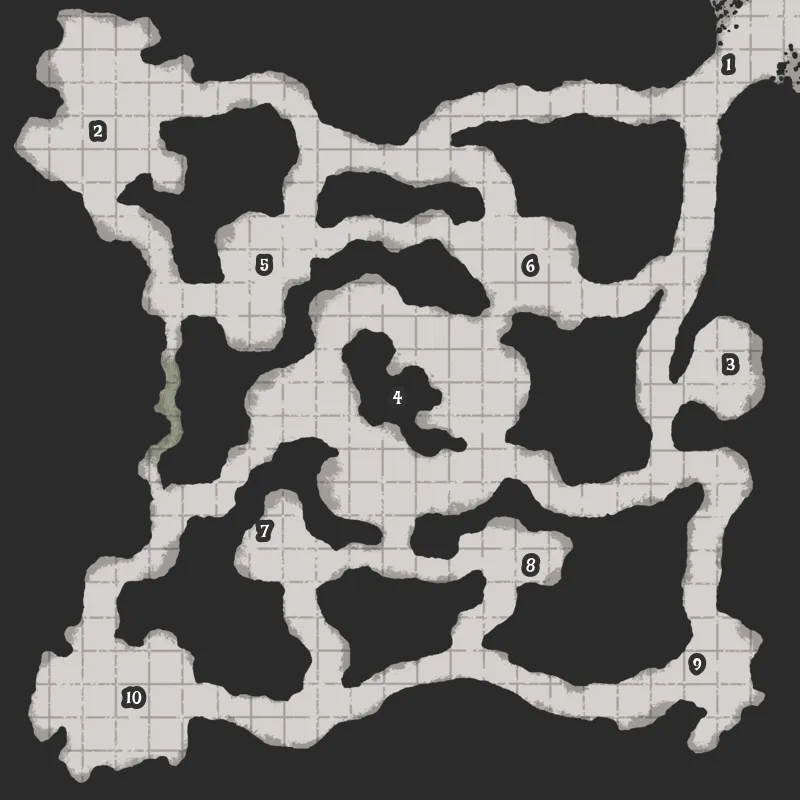 - An excavation leading into area 1 in the dungeon is inside a cave on the face of a steep cliff.